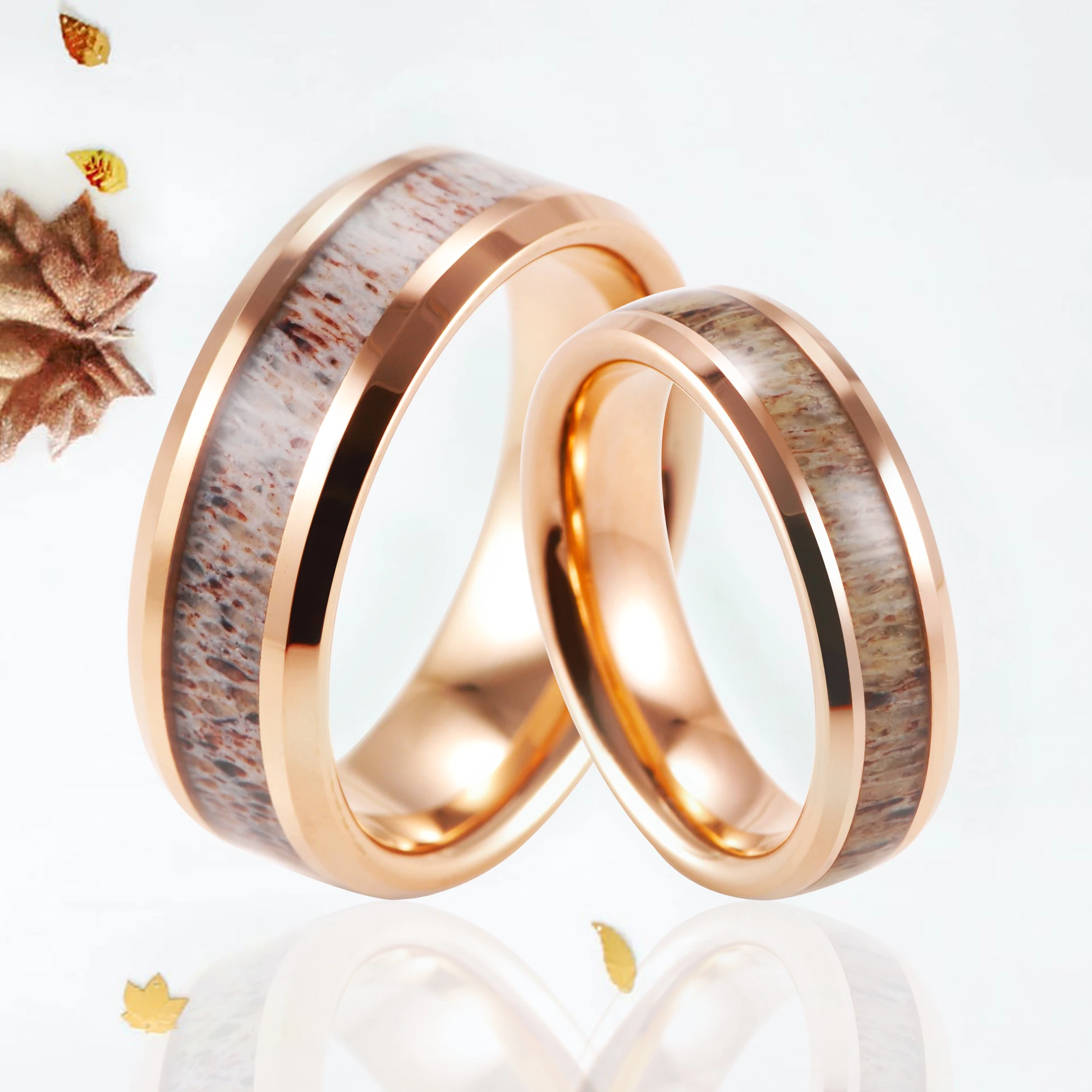 Couples Rose Gold Deer Antler Ring Set 6mm 8mm Tungsten Antler Wedding Bands Anniversary Rings Antler Wedding Band For Men Women Aliexpress Jewelry Accessories